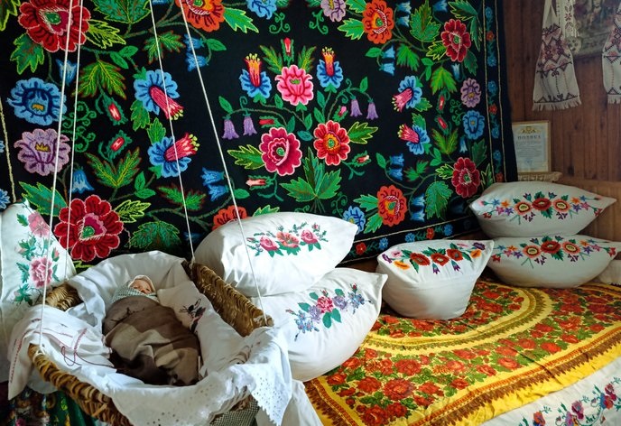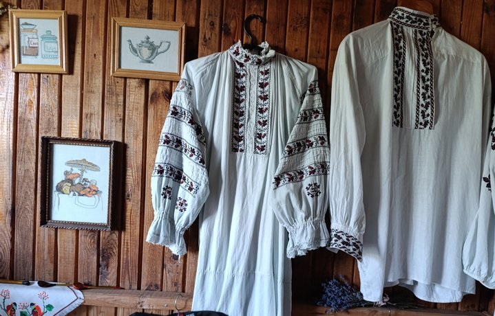 Окремий плюс — всередині будиночка є невелика експозиція зі старовинних речей: вишиті сорочки, рушники, побутові предмети. Все це зібрано буквально «з миру по нитці» місцевими жителями, що додає місцю автентичності.