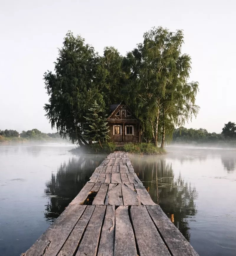 Пізніше з’явився дерев’яний місток, який з’єднав острів із берегом. Саме він зробив локацію доступною і водночас ще більш атмосферною. Дерева, що ростуть прямо на острові, формують цей впізнаваний «казковий» вигляд — через них будиночок виглядає ніби вирваний із якогось фільму або листівки.