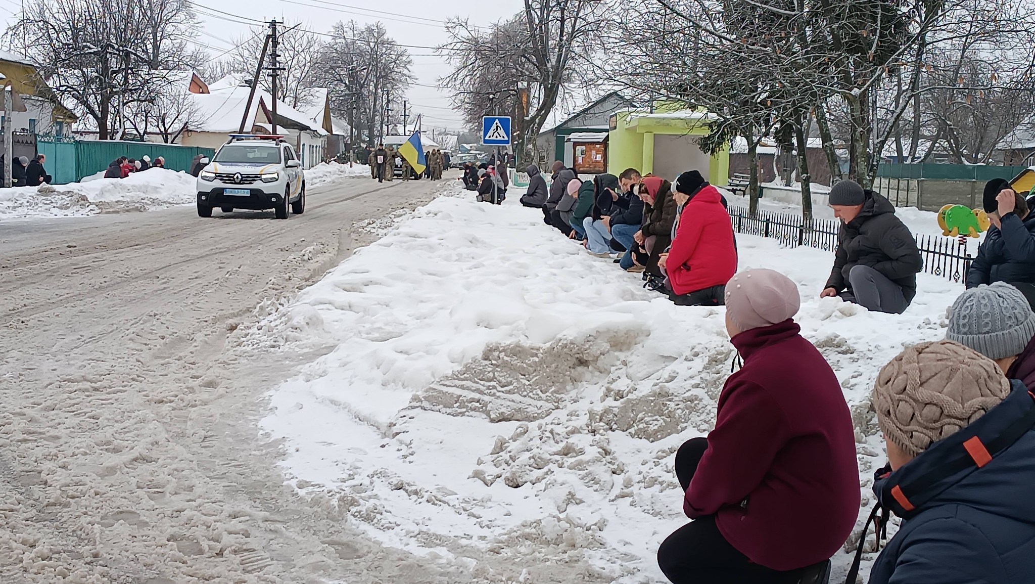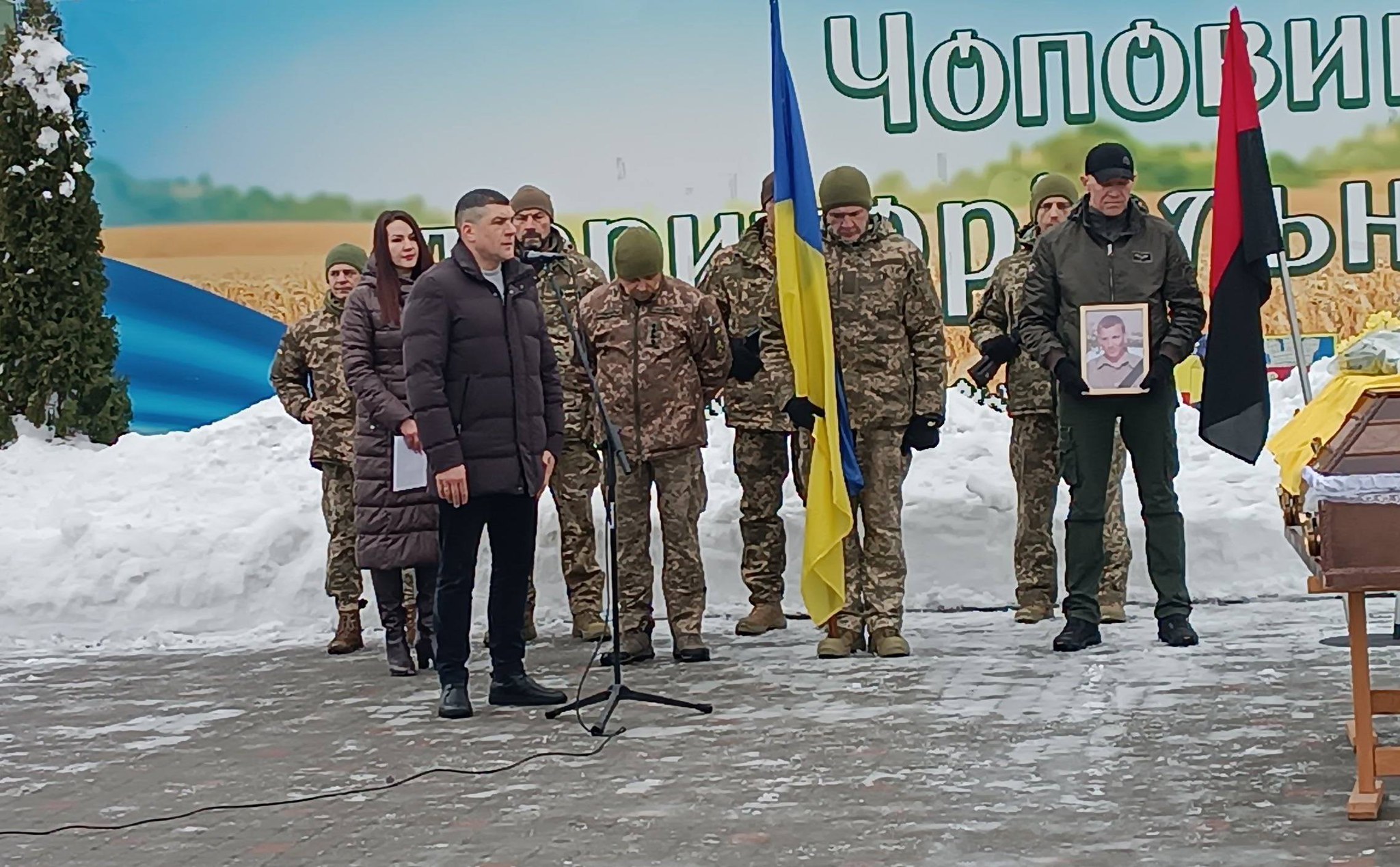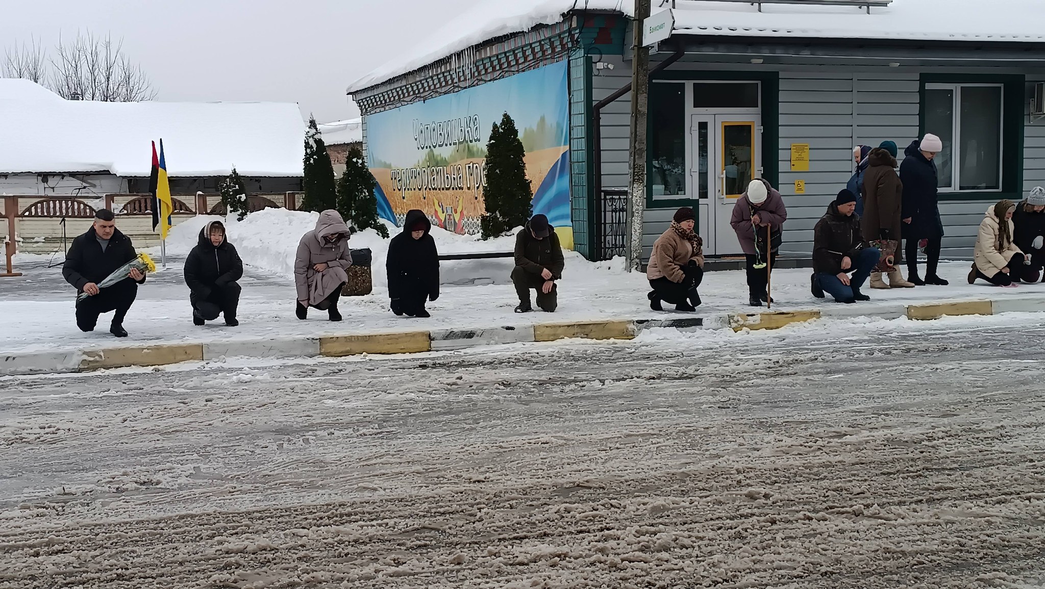 На церемонії прощання жителі громади схилили голови та стали на коліна, віддаючи шану Герою. Кожен присутній відчував біль і тяжкість втрати, усвідомлюючи жорстокість війни та загрозу, яку несе ворог, що намагається знищити українську націю.