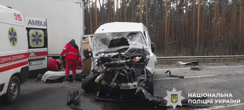 За попередньою інформацією поліції Київщини, аварія сталася на ділянці дороги, де проводилися ремонтні роботи. Водій вантажівки DAF допустив зіткнення з автомобілями, що рухалися попереду — Volkswagen Golf, Volkswagen Transporter, Chevrolet Epica та Renault Master.