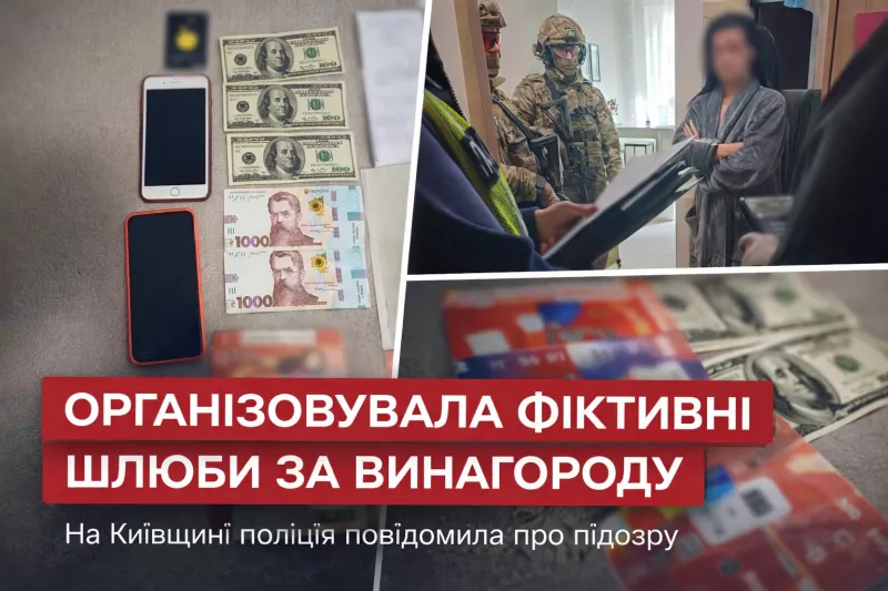 На Київщині правоохоронці викрили жінку, яка організовувала фіктивні шлюби для іноземців з метою легалізації в Україні. За даними слідства, 43-річна мешканка столиці отримувала за свої «послуги» від 3 до 5 тисяч доларів.