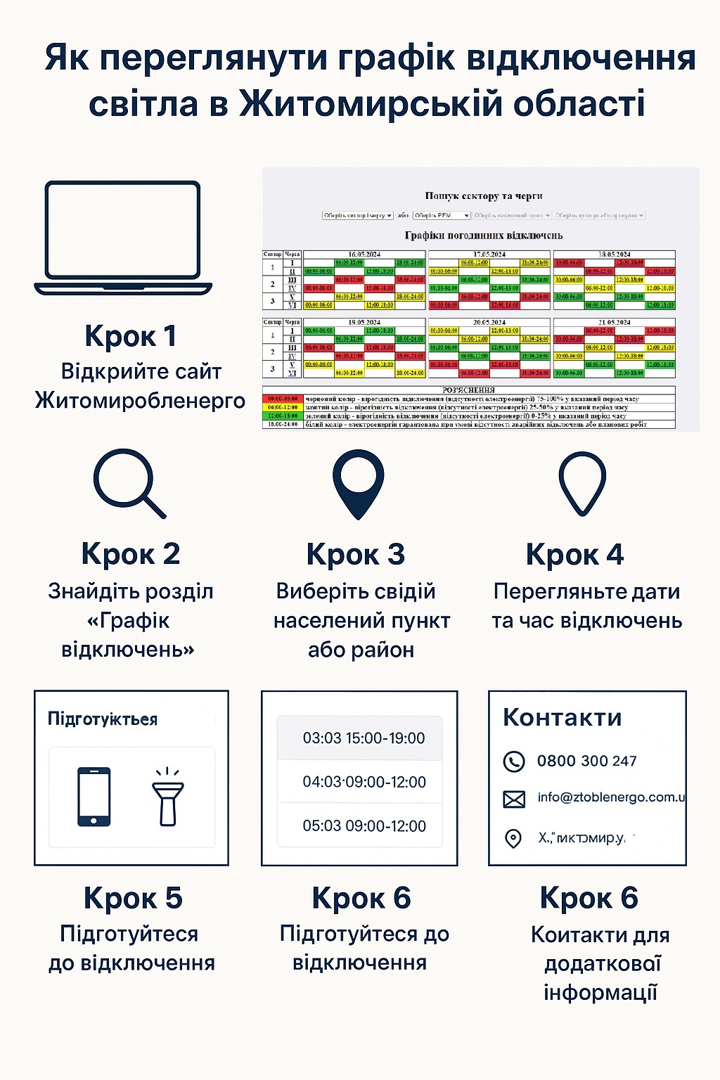 - Збережіть посилання на свій район або підпишіться на оновлення Житомиробленерго у соцмережах.