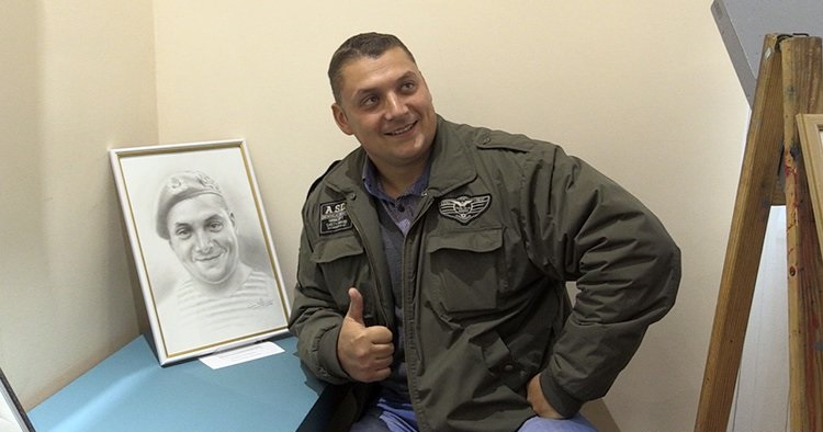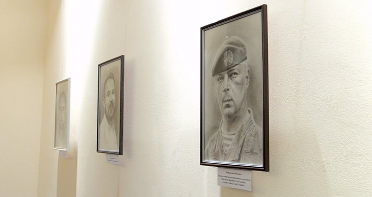 Волонтер і художник Ігор Сень представив 30 своїх робіт виконаних у техніці сухого пензля, на яких зображені військовослужбовці, волонтери та громадські активісти.