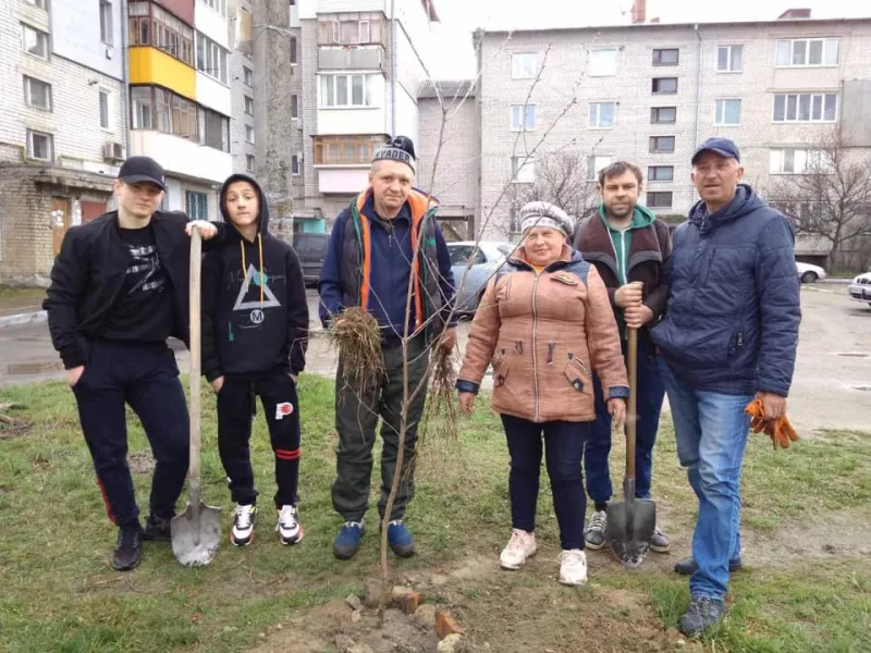 Так Небайдужі мешканці двох багатоповерхівок на вулиці Партизанській, що поблизу поліклініки, власноруч разом з Ольгою Гуцалюк, посадили саджанці вишні, абрикоса, сливи, горіха й обліпихи. Тож уже за кілька років подвір’я біля будинків може прикрасити чудовий сад, де можна буде відпочити і поласувати смачними плодами.