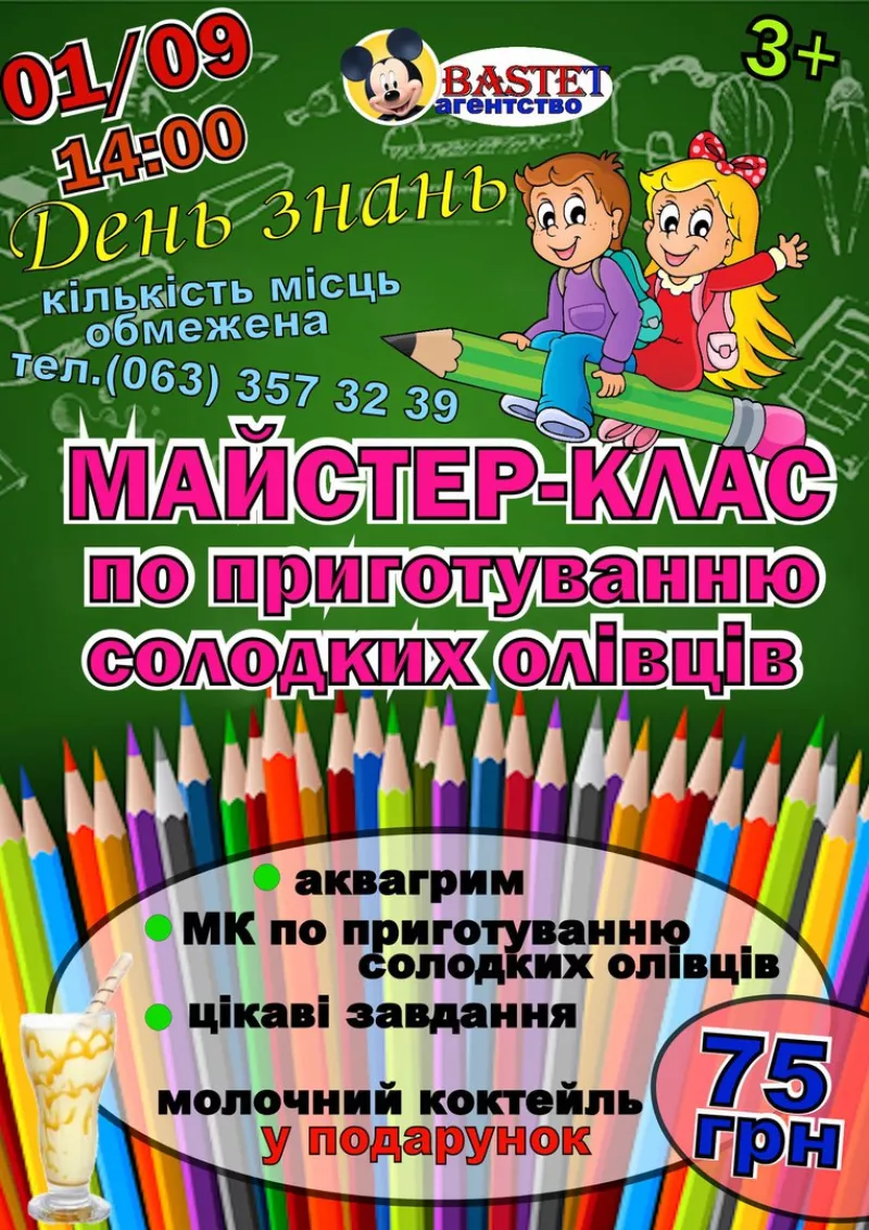Святкуємо День знань разом у Дитячому клубі "Bastet". Влаштуйте дитині справжнє звято 1-го вересня.