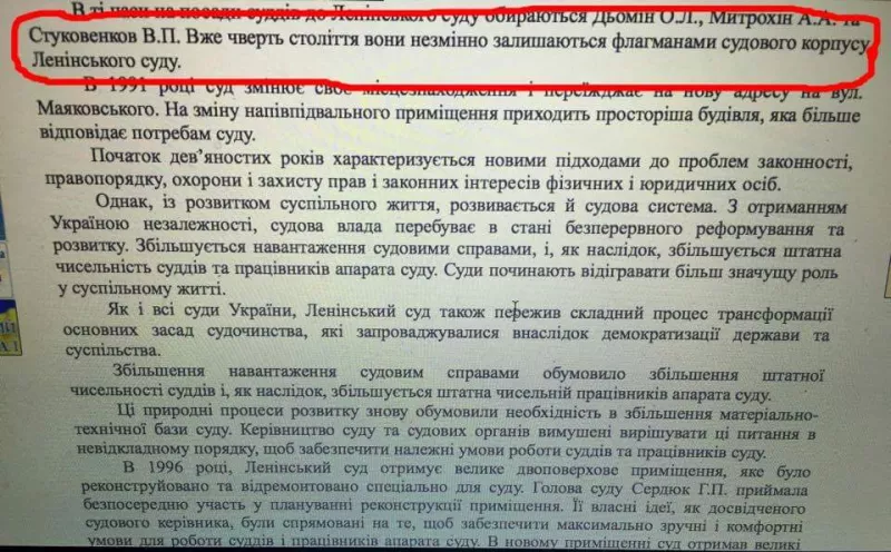 "Незмінним флагманом судового корпусу" сайт Ленінського суду назвиває Валерія Стуковенкова, суддю, який ще у 2010 році був спійманий на хабарі.