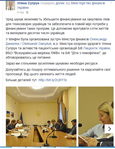 Про це в себе на сторінці в fasebook повідомила в.о. Міністра охорони здоров’я Уляна Супрун.