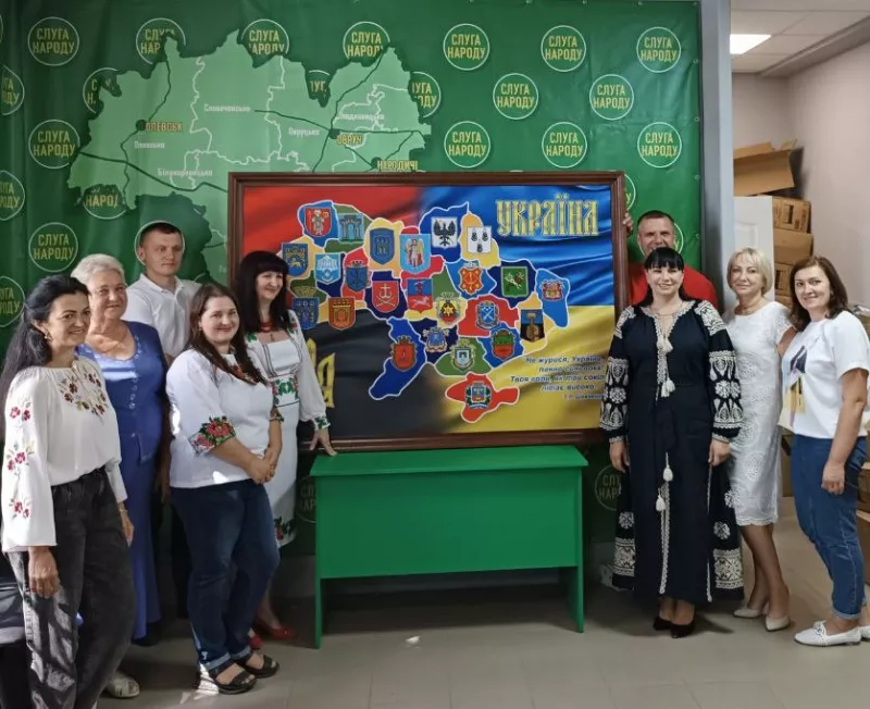 Місцеві майстрині на заклик народного депутата України Тетяни Грищенко впродовж трьох місяців вишивали ексклюзивну гербову мапу.