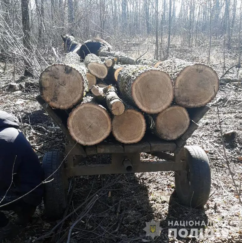 "Гужову підводу з дубовими колодами поліцейські помітили вранці 25 березня у лісовому масиві неподалік с. Болярки. Транспортним засобом керував 17-річний місцевий житель. Хлопець не надав жодних документів про походження та призначення деревини, права на її транспортування тощо. Відтак лісопродукцію вилучили та розпочали перевірку обставин", — йдеться у повідомленні.