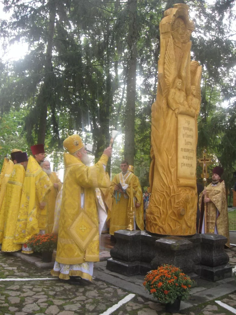 Перед освяченням пам’ятнику відбулася Божественна літургія, яку очолив Митрополит Овруцький і Коростенський Віссаріон. Після цього ним же відбувся й акт освячення пам’ятника князю Володимиру. Митрополит Віссаріон у своїй проповіді наголосив на тому, наскільки важливою для нашого народу є постать князя Володимира, який офіційно впровадив Християнство на всій Русі.