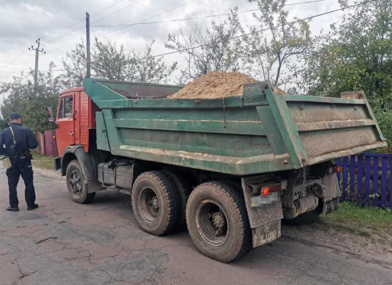 Удень 29 вересня інспектори сектору реагування відділення поліції №2 (м. Олевськ) Коростенського РУП зупинили для перевірки автомобіль «КАМАЗ». Під час огляду з’ясувалось, що транспортний засіб завантажений піском. Утім жодних документів про походження та законність перевезення такого вантажу водій, 57-річний місцевий житель, не надав.