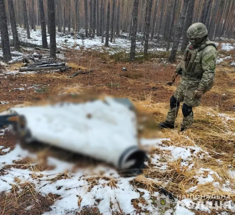 Інцидент стався у лісовій місцевості, де було виявлено уламки російського БпЛА типу "Герань".