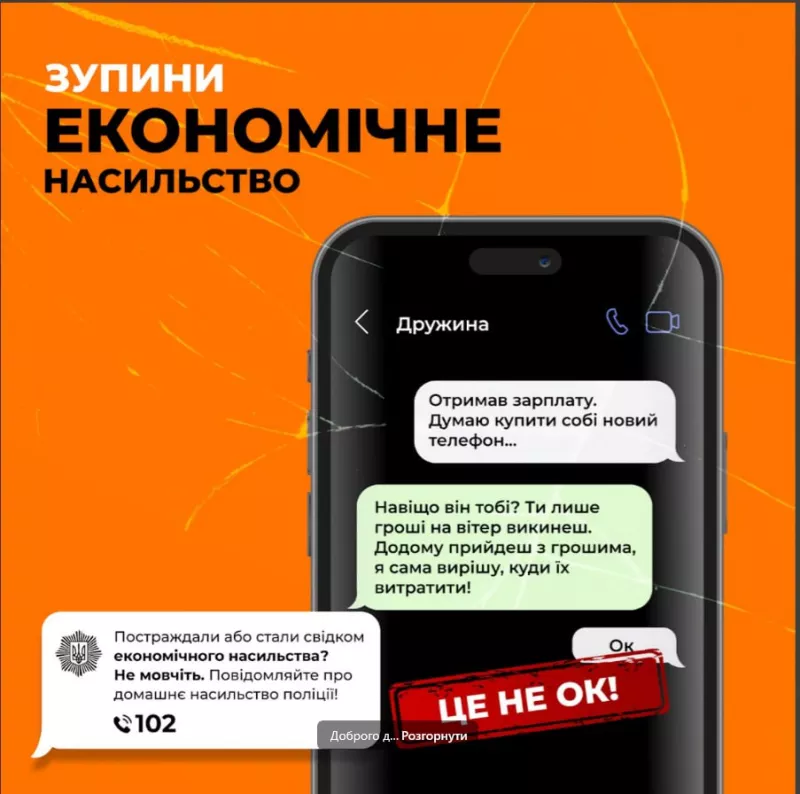 Телефонуйте за номером 102 та викликайте поліцію. Економічне насильство – це не ОК!