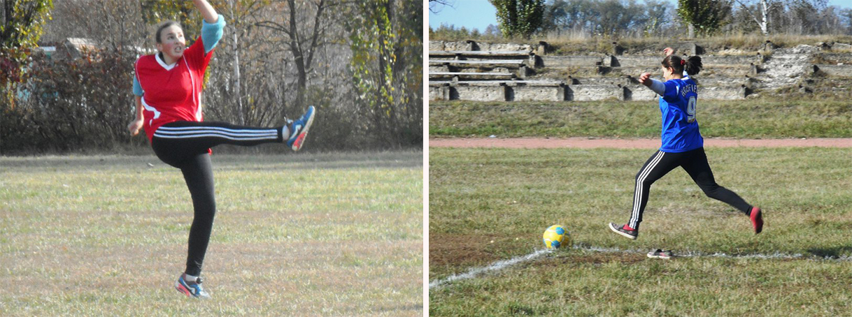 Юні, талановиті та емоційні — саме такі дівчата на фотосвітлинах показують, як треба грати у футбол. Хлоці тим часом, плюхаючи насіння, спостерігають за грою з трибун.