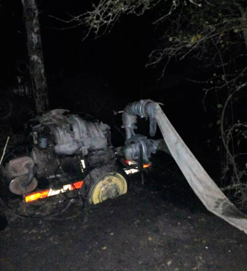 Слідчо-оперативна група поліції вилучила автомобіль ГАЗ-66, два дизельні мотопомпи та пожежні рукави.