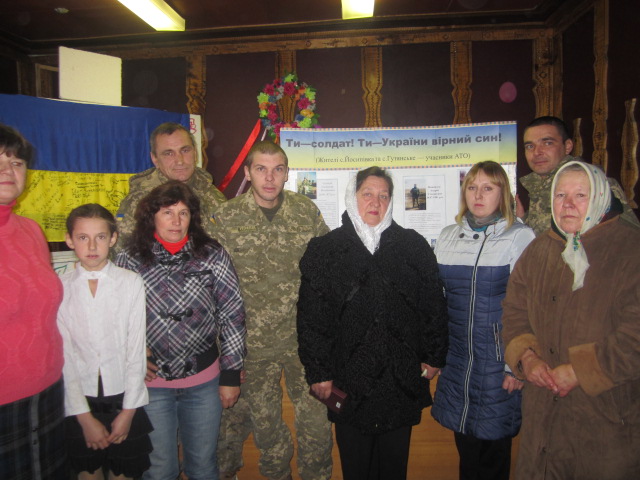 Стоячи, під гучні, подібні до стукоту серця, аплодисменти, зал зустрічав своїх героїчних земляків — бійців-учасників антитерористичної операції: Андрій Никончук, Роман Никончук, Олександр Гринік. Їх на території сільської ради – одинадцять. Звичайно, не всі змогли прийти. Стоячи, вітали кожну згадку про українського воїна, кожну військову нагороду.