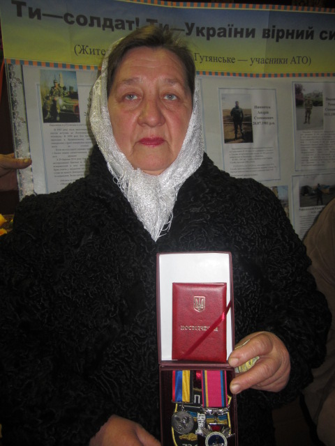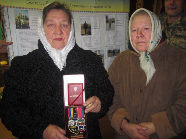 Серед них мама Олександра Сологуба. Коли на схід нашої країни прийшла війна, Олександр одним з перших, ще 29 березня 2014 року був мобілізований до 72-окремої моторизованої бригади. Брав участь у звільненні міста Слов’янськ. Майже три місяці стояв на захисті Донецького аеропорту. Отримав поранення, був контужений. За проявлену мужність був нагороджений медалями «Медаль за оборону Донецького аеропорту» та «Медаль за участь в АТО».