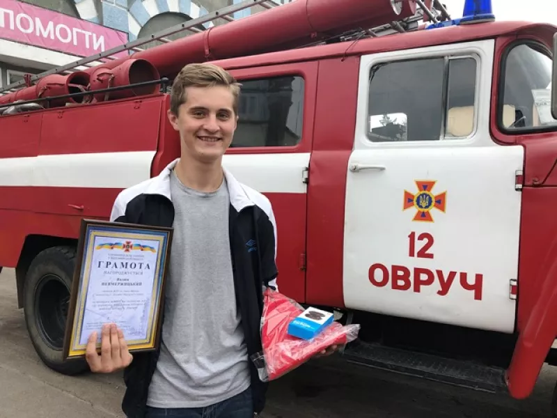 7 липня на базі 12-ї Державної пожежно-рятувальної частини м. Овруч представники Управління ДСНС області нагородили грамотою та цінним подарунком 18-річного хлопця, який врятував з річки двох дівчат-підлітків у с. Дівошин Овруцького району. Про героїчний вчинок рятувальники дізналися від вдячної матері однієї із дівчат, сама ж подія сталася 28 червня.