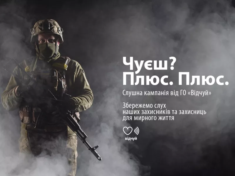 Громадська організація «Відчуй» розпочинає слушну кампанію «Чуєш? Плюс. Плюс». Це реабілітація військових, що вже отримали травми органів слуху, та заходи щодо превенції втрати в майбутньому. Проєкт реалізується спільно з Міністерством охорони здоров’я та Радницею-Уповноваженою Президента України з питань безбар'єрності.