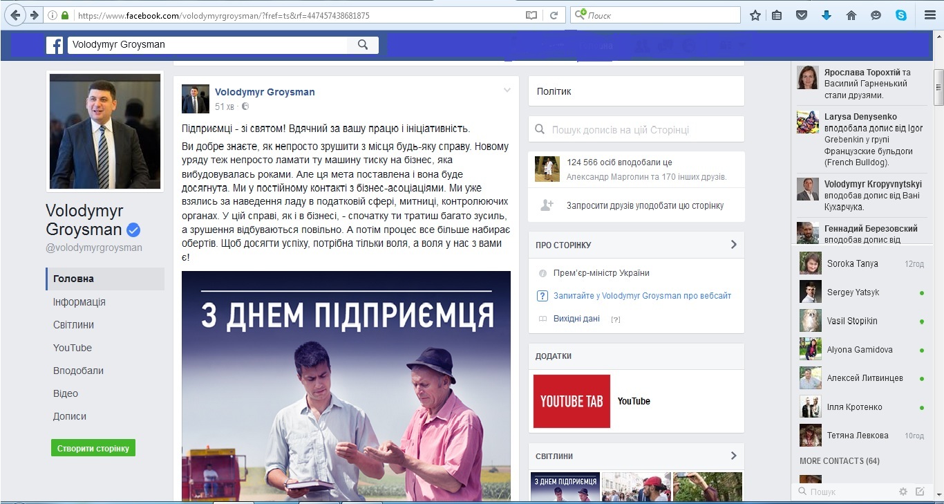 Володимир Гройсман привітав підприємців з професійним святом. Про це він написав в себе в фейсбуці.