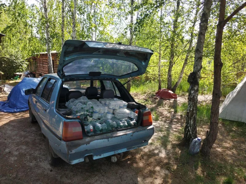 Й от сьогодні волонтери вирушили до погорільців, аби передати зібрані для них найнеобхідніші речі. Після довгої дороги у 30-градусну спеку автомобіль з речами дістався свого кінцевого пункту призначення.