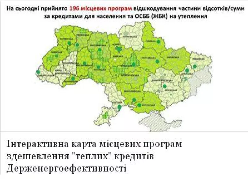 Дізнатися, в яких містах, районах, областях місцева влада відшкодовує частину відсотків та суми так званих «теплих» кредитів, можна за допомогою спеціальної Інтерактивної карти, яка створена Держенергоефективності за підтримки проекту GIZ «Створення енергетичних агентства в Україні».