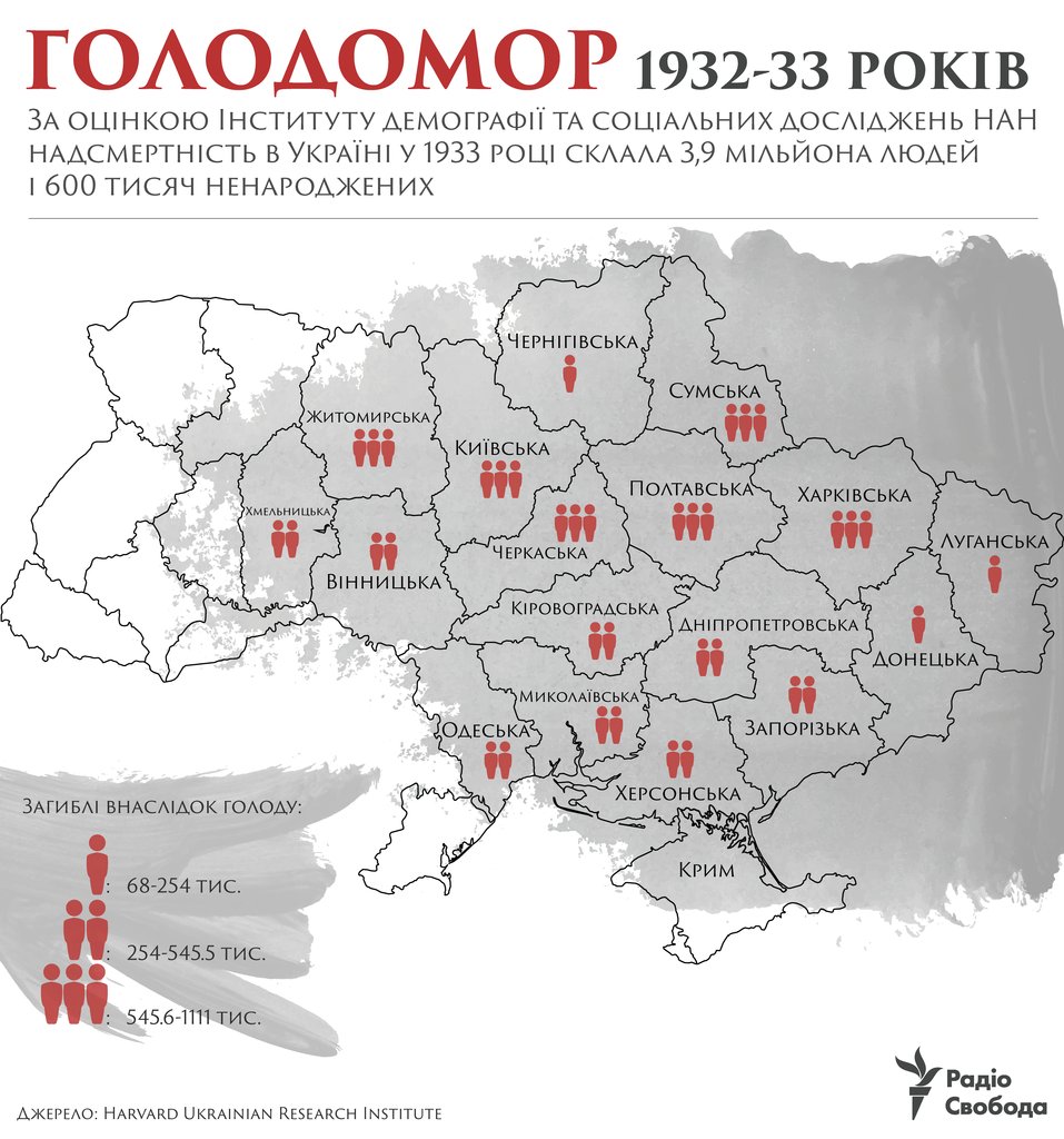 Як бачимо, від голодомору 1932-1933 років найбільше постраждали Житомирська, Київська, Сумська, Полтавська, Харківська та Черкаська області.
