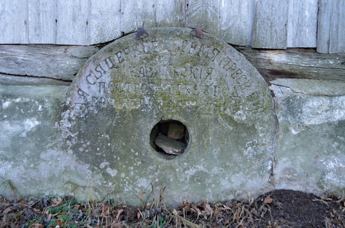 Закладний камінь є рідкістю для храмів XIX століття та, ймовірно, був узятий зі старого млина.