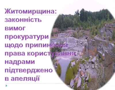 Законність позовних вимог прокуратури Житомирщини щодо припинення права користування надрами підтверджено в апеляційній інстанції