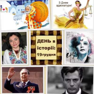 19 грудня - цей день в історії Свято Миколи Чудотворця День адвокатури 1863 – Англієць Фредерик Уолтон запатентував покриття, яке назвав лінолеум 1906 – народився Леонід БРЕЖНЄВ, генер...