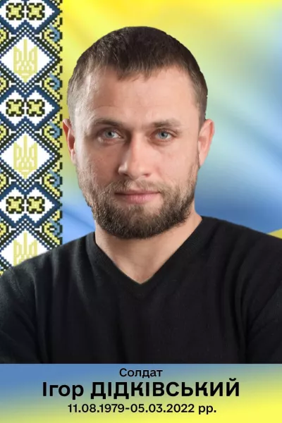 Навічно в строю солдат Ігор Дідківський (11 серпня 1979 - 5 березня 2022) загинув у місті Буча на Київщині. Ігор Дідківський родом із Малина Житомирської області. Пізніше чоловік жив в Ірпені, а по...
