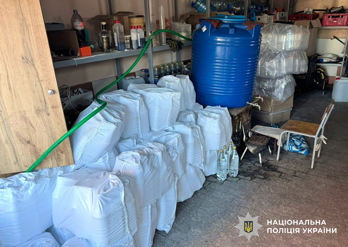 Під час обшуків за місцем проживання підозрюваного виявили й інші речі — майже 2,5 тисячі літрів спиртовмісних рідин, обладнання для виготовлення фальсифікованої продукції та понад тисячу пачок сигарет.