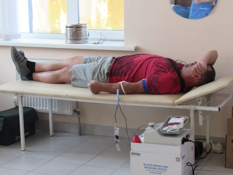 Забір крові у виїзних умовах проводила бригада спеціалістів Житомирського обласного центру крові. За день вони зможуть зібрати 54 літри донорської крові.