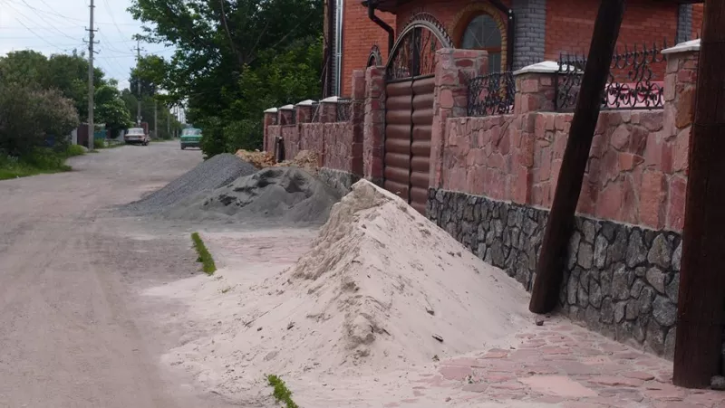 Люди будуються, роблять ремонти, кладуть нові паркани і плитку, саме тому під парканами гори піску, відсіву, щебеню. І це добре, люди зайняті будівництвом, значить хоч у когось життя покращується, а у когось є робоче місце, можливість, працюючи на приватній будівлі, забезпечити себе чи прогодувати родину.