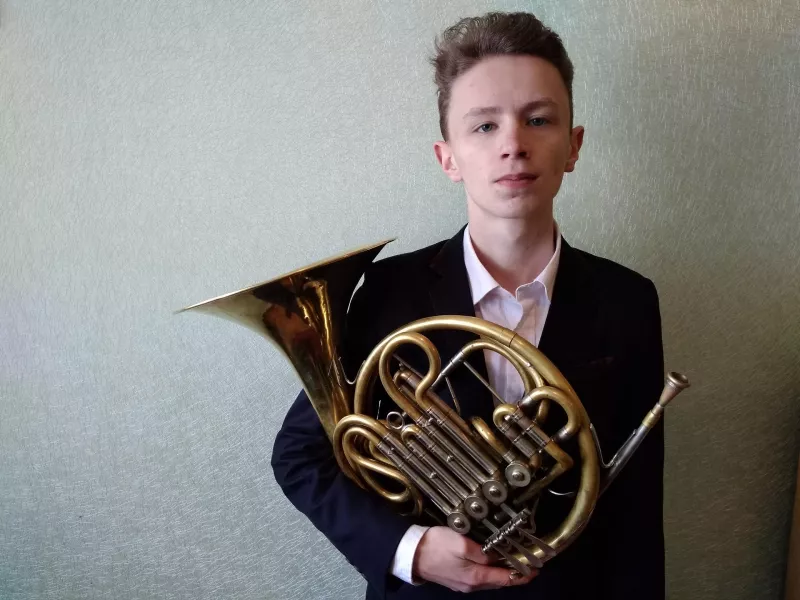 На фото: лауреат конкурсу, учень духового відділу Олександр Романенко