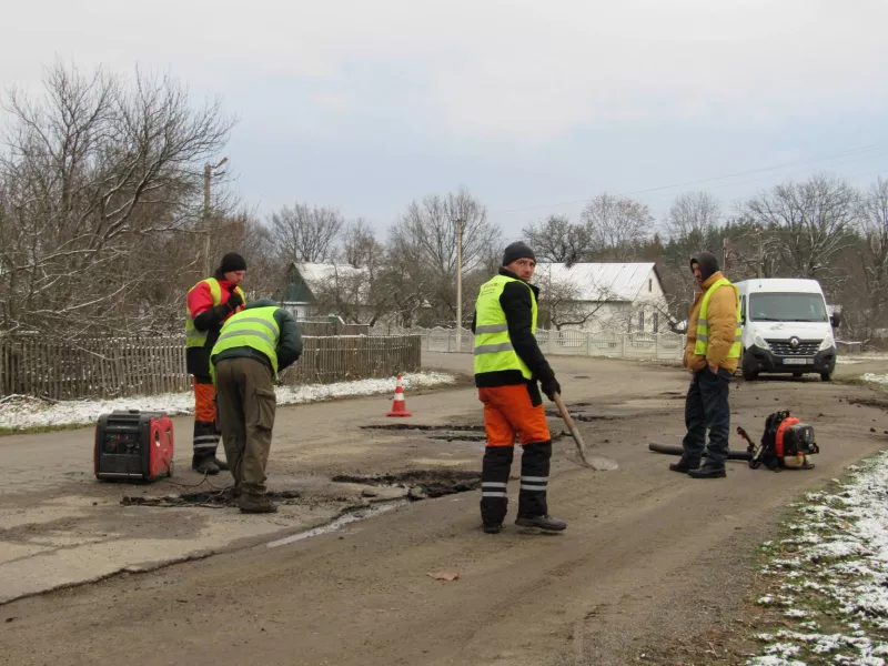 У Малинській громаді дорожники ремонтують шляхи навіть у сніг і мороз. Фахівці латають ями на дорогах у селах.