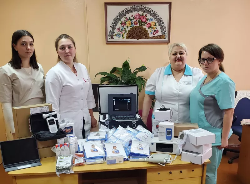 Крім того, до нього увійшли медичні засоби для боротьби з кровотечею, транспортування дітей і жінок в екстремальних умовах. Також відділення гінекології отримало апарат для діагностики ступеню асфіксії новонароджених, монітор пацієнта для жінок та дітей, портативний УЗД, тонометр, токограф (вимірює серцебиття дитини в пологах), Apple IPAD для реєстрації даних і навіть пов'язку «Кенгуру» для дуже маленьких діток.