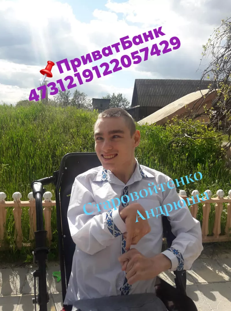 Хворий на ДЦП Андрій Старовойтенко вже довгі роки мужньо бореться зі своєю хворобою. Родина Андрійка дуже просить небайдужих допомогти їх сину продовжити боротьбу.