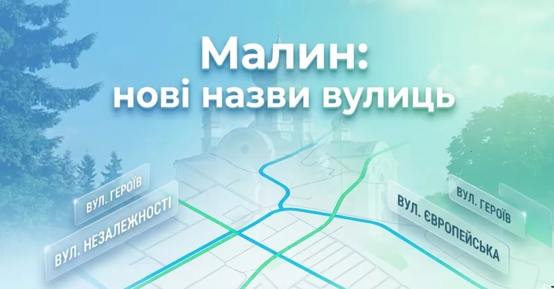 У статті «Малин: нові назви вулиць та населених пунктів громади» зібрана актуальна інформація про перейменування вулиць і провулків у місті Малин та населених пунктах Малинської громади.
