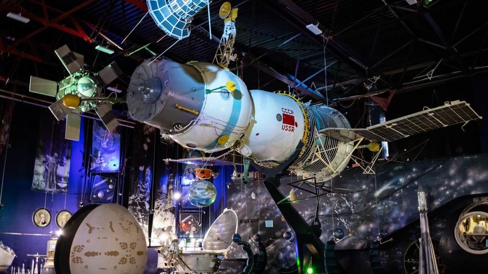 Основна експозиція — це вже інший рівень. Тут є моделі супутників, космічні апарати, скафандри, документи і навіть елементи реальної техніки. Музей не тільки про «залізо», а й про ідею — як людство взагалі дійшло до космосу і що це означає.