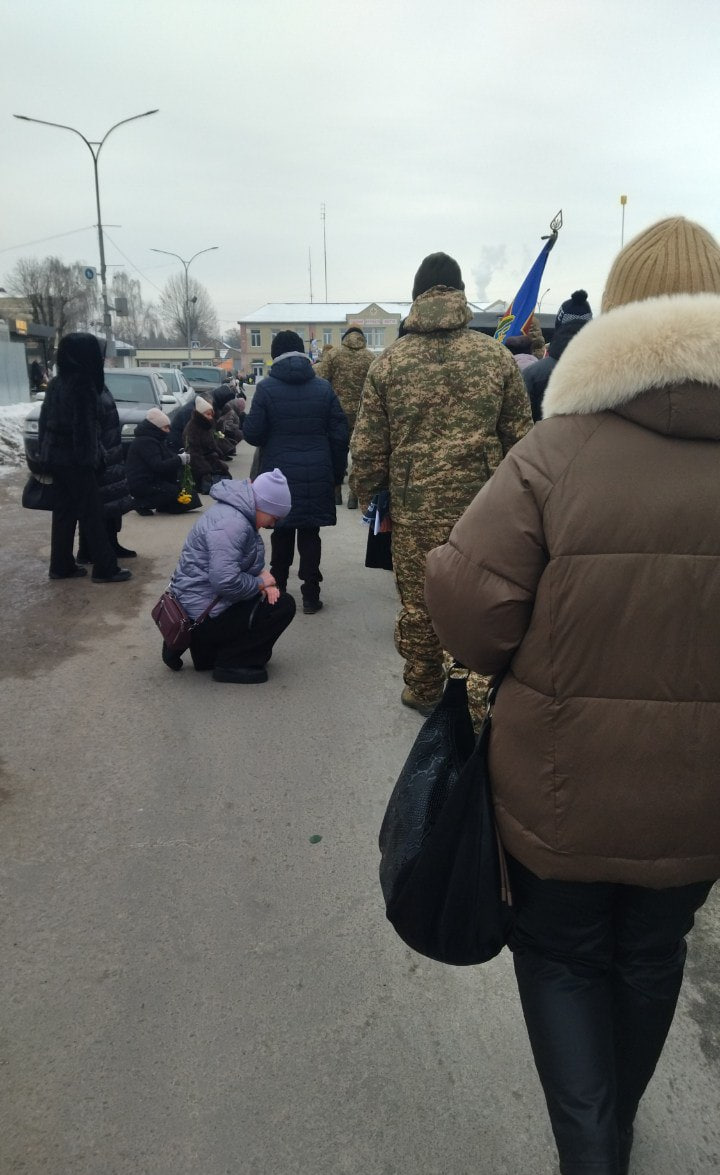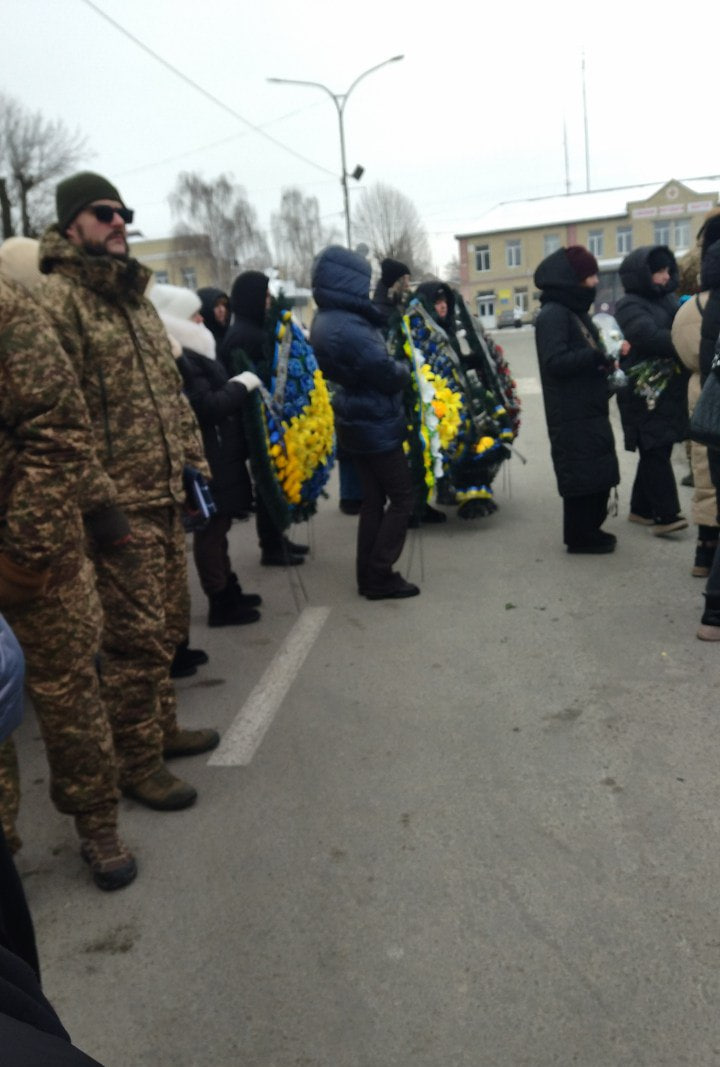 О 12:15 жителі громади утворили живий коридор від аптеки до відділення «ПриватБанку», щоб віддати належну шану Захиснику. Люди ставали обабіч дороги з квітами та державними прапорами, проводжаючи Юрія в його останній шлях.
