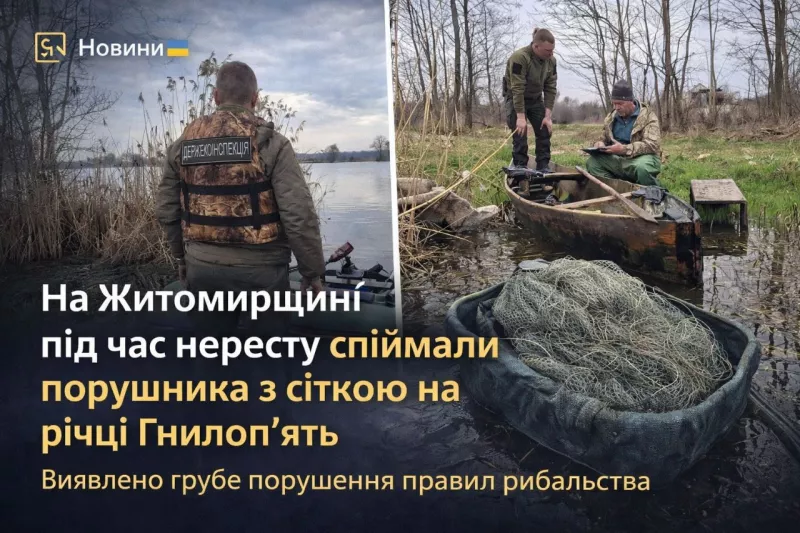 У Бердичівському районі Житомирської області зафіксували грубе порушення правил рибальства. Інцидент стався 3 квітня на річці Гнилоп’ять у межах села Скраглівка.