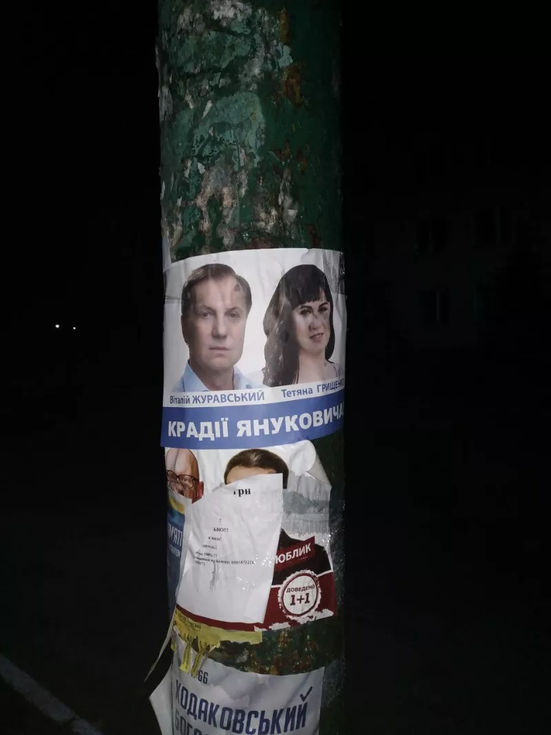 Сьогодні, 18 липня, у Малині посеред ночі невідомі розклеювали "чорнушні" матеріали на кандидатів у народні депутати по 66-у передвиборчому округу: Павла Дзюблика, Віталія Журавського та Тетяну Грищенко.