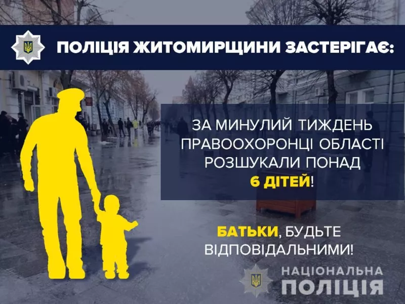 Уночі 16 лютого до Житомирського відділу поліції звернулась 24-річна жінка із повідомленням про зникнення її маленької донечки віком 1,8 років. За словами жінки, її чоловік ще зранку пішов з дитиною гуляти, а повернувся вночі у нетверезому стані та вчинив скандал. Дитини з ним не було і де вона – не сказав та пішов з дому.