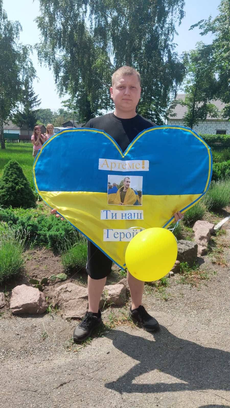 За давніми українськими традиціями Артема зустрічали короваєм, квітами та вишитими рушниками. Кожен присутній засвідчив свою повагу герою та підтримку його родині.