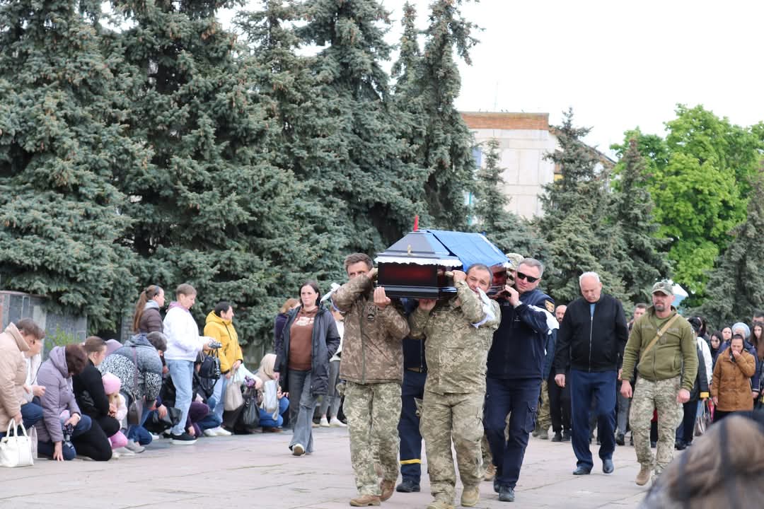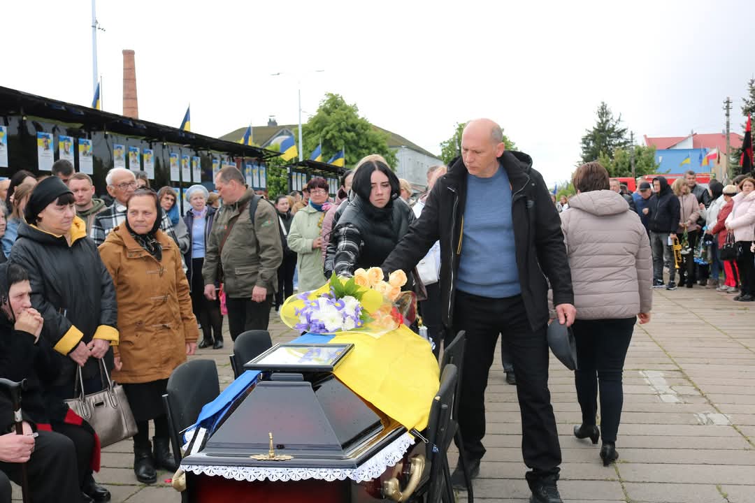 Центральна площа міста була вкрита квітами з чорними стрічками, а повітря пронизували скорботні звуки духового оркестру. Сотні людей прийшли, щоб віддати останню шану своєму землякові, який повернувся додому "на щиті".