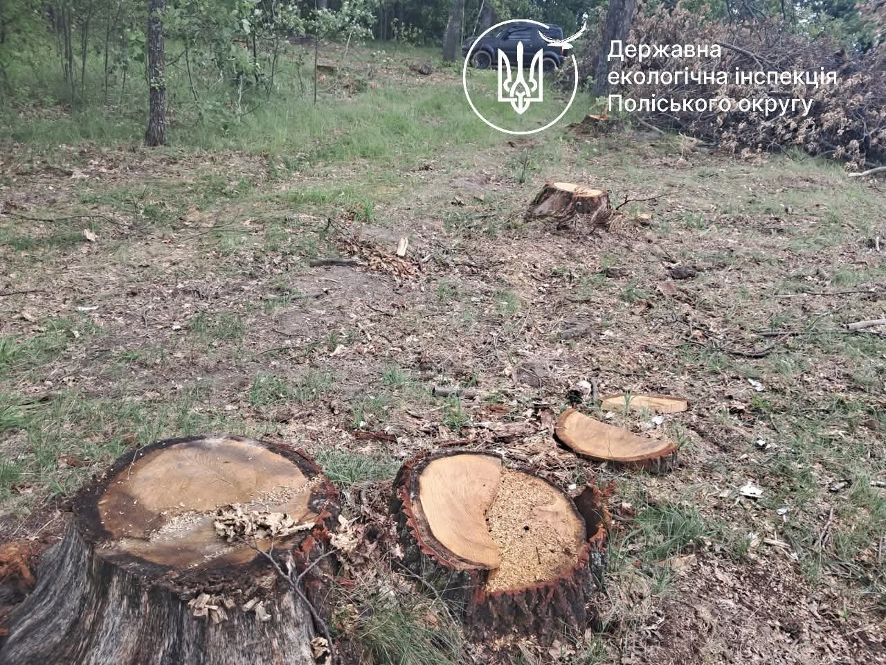 У червні минулого року інспектори Державної екологічної інспекції Поліського округу проводили рейдові перевірки в Житомирському районі. Поблизу села Гришківка вони зафіксували факт незаконної порубки 122 дубів.