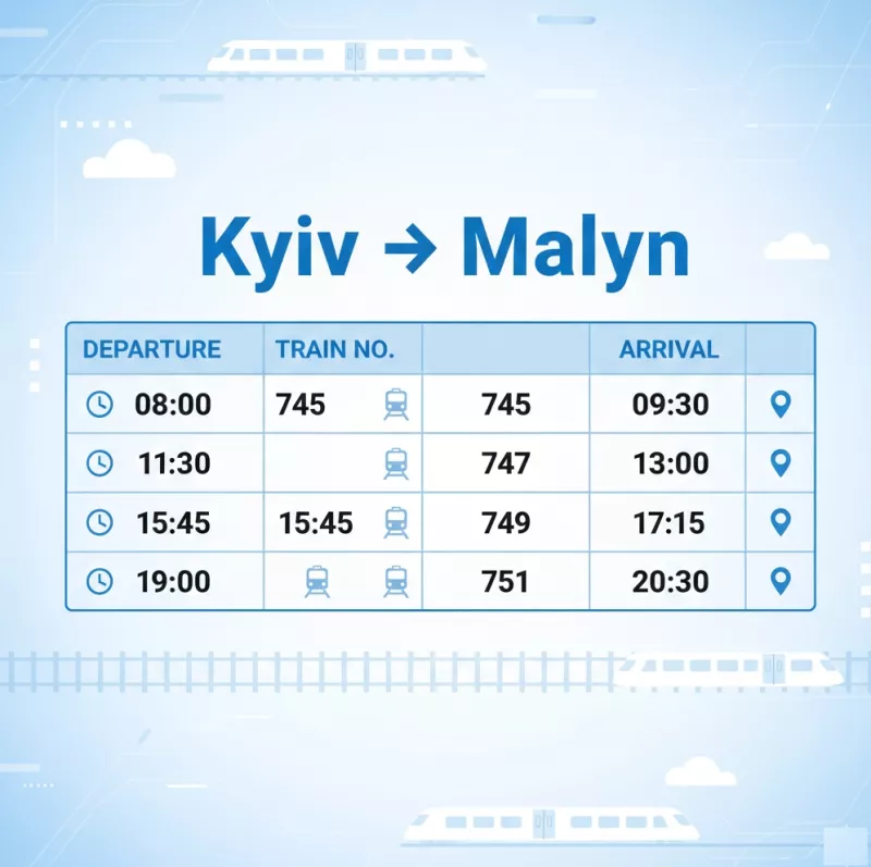 Популярні пошукові запити: розклад електричок Київ Малин, електричка Святошин Малин, поїзд Київ Малин розклад, приміські потяги Київ Житомирська область, розклад Малин Київ 2025, електричка через Святошин, залізничне сполучення Київ Малин, Святошин Коростень розклад.