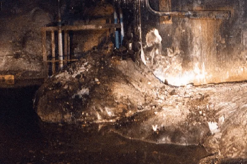 пісок і бетон, що плавилися й змішувалися з паливом