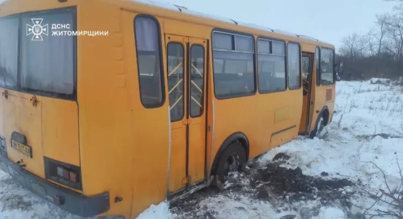 Як зазначають у службі порятунку, інцидент стався поблизу села Мала Горбаша Житомирського району. Рейсовий автобус не зміг самостійно продовжити рух через значні снігові перемети. У салоні транспортного засобу перебували 15 пасажирів.
